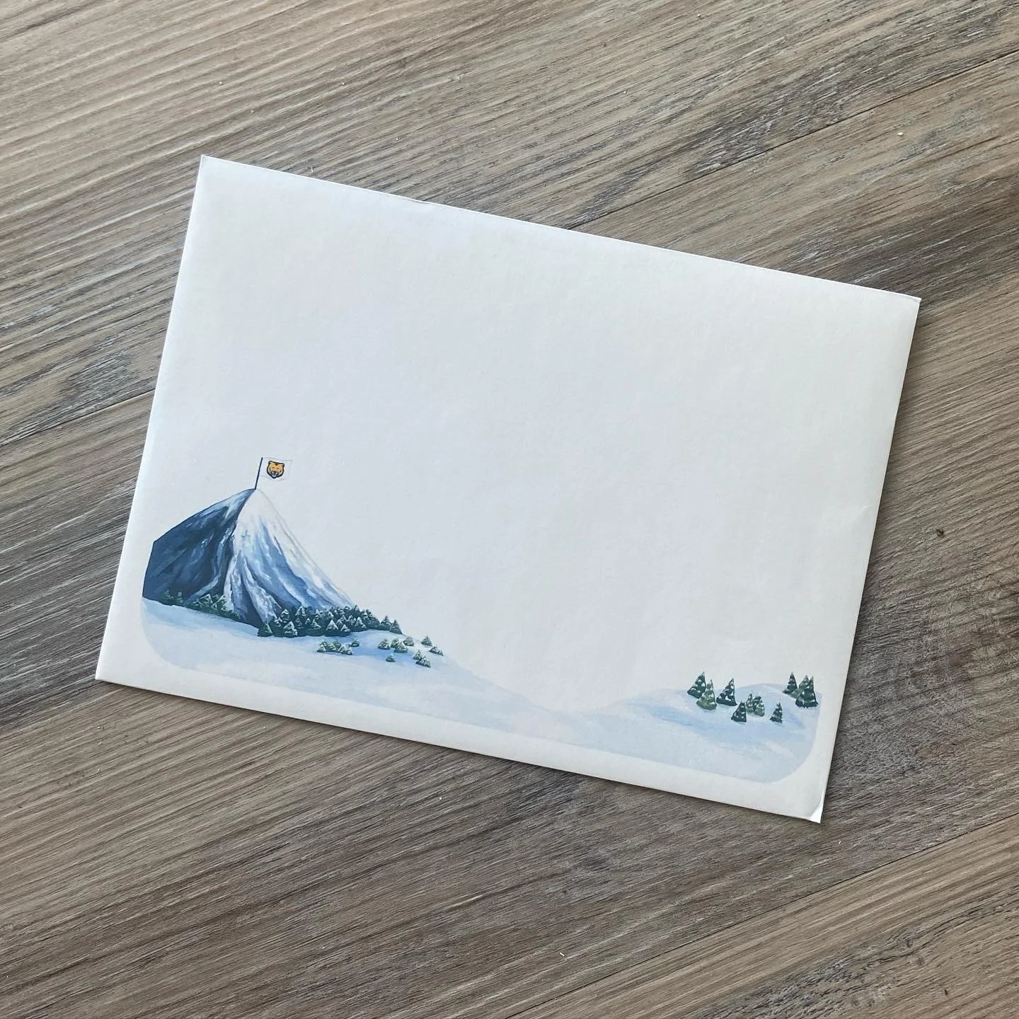 This year was the first year I worked on the Holiday Card. The President’s family had, in prior years, used a family photo for the front of the card but was looking for something different in 2023. I illustrated a scene reminiscent of our then-current North of the Norm branding campaign, and in reference to our President’s love of hiking mountains. He and Klawz (our mascot) pose on the inside for a Polaroid-inspired picture, after reaching the summit.